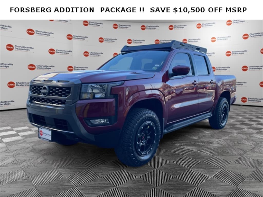 Cardinal Red Metallic Tricoat 2025 Nissan Frontier SV 4WD 9-Speed Automatic with Overdrive 3.8L DI DOHC 24V V6 4WD, 120V Power Outlet in Bed, 120V Power Outlet in Rear Center Console, 17" Alloy Wheels, 3.692 Axle Ratio, 4-Wheel Disc Brakes, 6 Speakers, ABS brakes, Air Conditioning, Alloy wheels, AM/FM radio: SiriusXM, Anti-whiplash front head restraints, Auto High-beam Headlights, Bed Under-Rail Lighting, Blind Spot Warning, Brake assist, Bumpers: body-color, Carpeted Floor Mats, Delay-off headlights, Driver door bin, Driver vanity mirror, Dual front impact airbags, Dual front side impact airbags, Electronic Stability Control, Electronic Tailgate Lock, Emergency communication system, Front anti-roll bar, Front Bucket Seats, Front Center Armrest, Front Halogen Fog Lights, Front reading lights, Front wheel independent suspension, Fully automatic headlights, Heated Front Seats, Heated Leather Steering Wheel, Heated Outside Mirrors, HVAC - Dual-Zone Front Auto A/C, I-Key w/Request Switches on O/S Handles, Illuminated entry, Illuminated Locking Glove Box w/Damper, Knee airbag, Leather Shift Lever, Low tire pressure warning, Nissan Tailgate Audio by Kicker w/Utili-Track Brkt, NissanConnect Services & Wi-Fi Hotspot Delete, Occupant sensing airbag, Overhead airbag, Overhead console, Panic alarm, Passenger door bin, Passenger vanity mirror, Power door mirrors, Power driver seat, Power steering, Power windows, Premium Cloth Seat Trim, Premium Paint, Radio data system, Radio: SXM/AM/FM/AUX/USB Audio System, Rear anti-roll bar, Rear seat center armrest, Rear side impact airbag, Rear step bumper, Remote Engine Starter, Remote keyless entry, Security system, Speed control, Speed-sensing steering, Splash Guards, Split folding rear seat, Spray-In Bedliner, Steering wheel mounted audio controls, SV Convenience Package, Tachometer, Telematics Delete Package, Telescoping steering wheel, Tilt steering wheel, Tow Package (T11), Tow/Haul Mode Switch, Traction control, Trailer Hitch w/Wiring Harness, Trip computer, Utili-Track System, Variably intermittent wipers, Voltmeter, Wireless Apple CarPlay/Wireless Android Auto, 4WD.