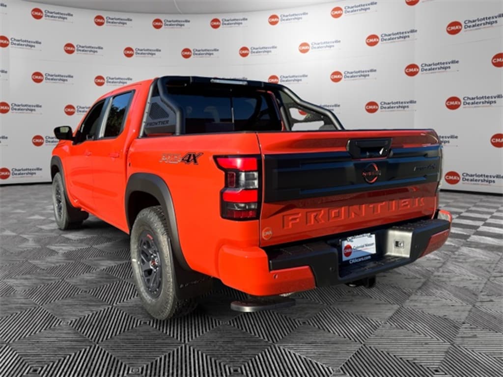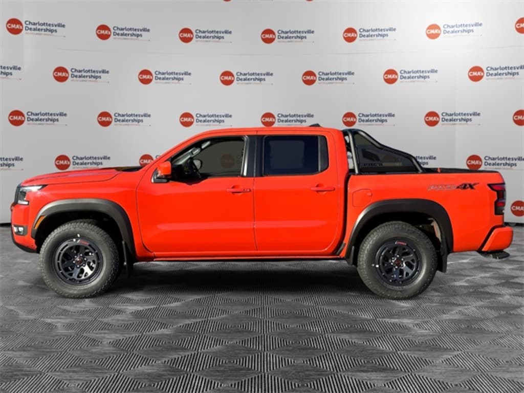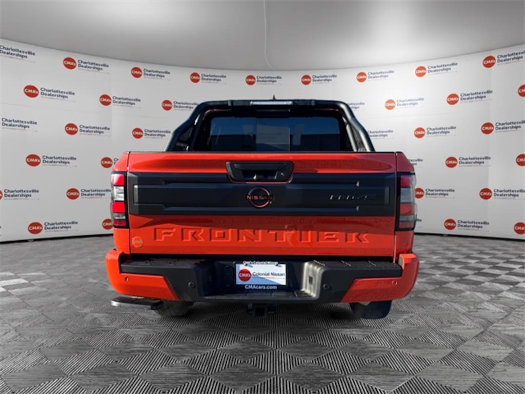 Afterburn Orange 2025 Nissan Frontier PRO-4X 4WD 9-Speed Automatic with Overdrive 3.8L DI DOHC 24V V6 4WD, 120V Power Outlet in Bed, 120V Power Outlet in Rear Center Console, 17" Painted Alloy Wheels, 3.692 Axle Ratio, 4-Wheel Disc Brakes, 6 Speakers, ABS brakes, Air Conditioning, Alloy wheels, AM/FM radio: SiriusXM, Anti-whiplash front head restraints, Auto High-beam Headlights, Automatic temperature control, Bed Access Package, Bed Under-Rail Lighting, Blind Spot Warning, Brake assist, Bumpers: body-color, Delay-off headlights, Driver door bin, Driver vanity mirror, Dual front impact airbags, Dual front side impact airbags, Electronic Stability Control, Electronic Tailgate Lock, Emergency communication system, Essentials Kit, Front anti-roll bar, Front Bucket Seats, Front Center Armrest, Front dual zone A/C, Front fog lights, Front reading lights, Front wheel independent suspension, Fully automatic headlights, Heated Front Seats, Heated Outside Mirrors, Heated Steering Wheel, Illuminated entry, Intelligent Around View Monitor (I-AVM), Knee airbag, Leather Shift Knob, Leather steering wheel, Low tire pressure warning, Mud Flap Accessory, Occupant sensing airbag, Overhead airbag, Overhead console, Panic alarm, Passenger door bin, Passenger vanity mirror, Power door mirrors, Power driver seat, Power passenger seat, Power steering, Power windows, Premium Paint, PRO Convenience Package, PRO Embroidered Premium Cloth Seat Trim, Radio data system, Radio: SXM/AM/FM/AUX/USB Audio System, Rear anti-roll bar, Rear seat center armrest, Rear side impact airbag, Rear step bumper, Remote Engine Starter, Remote keyless entry, Security system, Speed control, Speed-sensing steering, Split folding rear seat, Sport Bar, Spray-In Bedliner, Steering wheel mounted audio controls, Tachometer, Telescoping steering wheel, Tilt steering wheel, Traction control, Trailer Hitch w/Wiring Harness, Trip computer, Utili-Track System, Variably intermittent wipers, Voltmeter, Wireless Apple CarPlay/Wireless Android Auto, Wireless Charging for Personal Devices, 4WD.