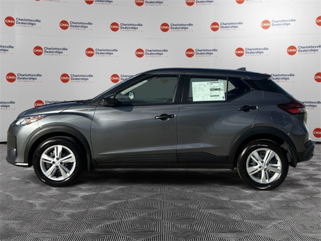 Gun Metallic 2025 Nissan Kicks Play S FWD CVT 1.6L 4-Cylinder DOHC 16V 16" Steel Wheels with Full Covers, 6 Speakers, ABS brakes, Air Conditioning, AM/FM Audio System, AM/FM radio, Apple CarPlay/Android Auto, Auto High-beam Headlights, Blind Spot Warning, Brake assist, Bumpers: body-color, Carpeted Floor Mats with Cargo Mat, Center Armrest with Storage, Cloth Seat Trim with Single Stitch, Driver door bin, Driver vanity mirror, Driver's Seat Mounted Armrest, Dual front impact airbags, Dual front side impact airbags, Electronic Stability Control, Front anti-roll bar, Front Bucket Seats, Front reading lights, Front wheel independent suspension, Fully automatic headlights, Illuminated entry, Knee airbag, Low tire pressure warning, Occupant sensing airbag, Outside temperature display, Overhead airbag, Panic alarm, Passenger door bin, Passenger vanity mirror, Power door mirrors, Power steering, Power windows, Radio data system, Rear Parking Sensors, Rear reading lights, Rear side impact airbag, Rear window defroster, Rear window wiper, Remote keyless entry, Speed control, Splash Guards Grain (4 Piece), Split folding rear seat, Sport steering wheel, Steering wheel mounted audio controls, Tachometer, Telescoping steering wheel, Tilt steering wheel, Traction control, Trip computer, Variably intermittent wipers.