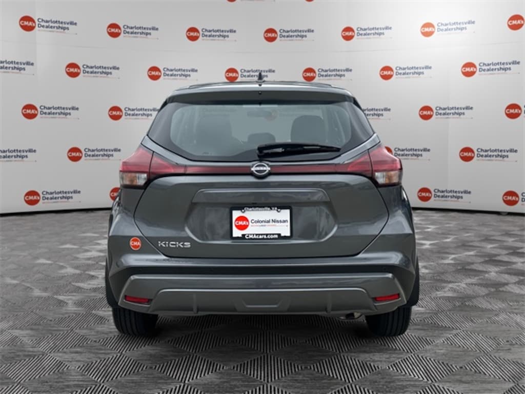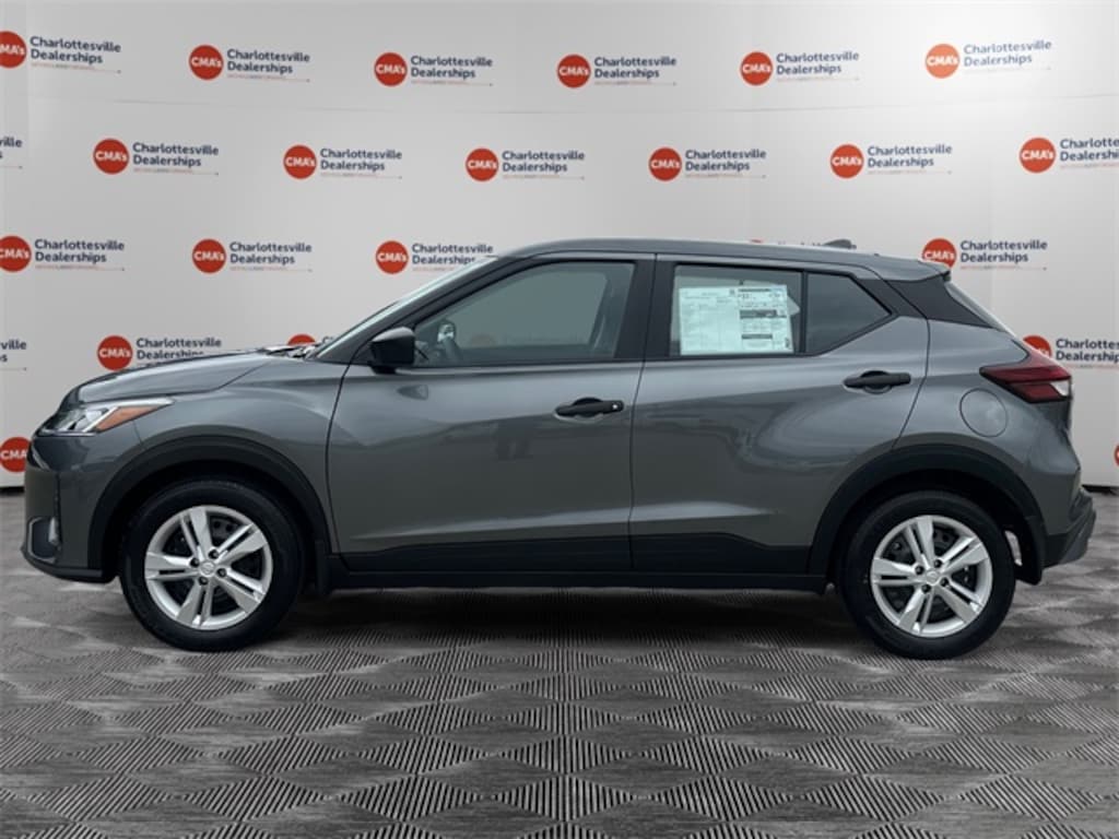 Gun Metallic 2025 Nissan Kicks Play S FWD CVT with Xtronic 1.6L 4-Cylinder DOHC 16V 16" Steel Wheels w/Full Covers, 6 Speakers, ABS brakes, Air Conditioning, AM/FM radio, Apple CarPlay/Android Auto, Auto High-beam Headlights, Blind Spot Warning, Brake assist, Bumpers: body-color, Carpeted Floor Mats w/Cargo Mat, Center Armrest w/Storage, Cloth Seat Trim w/Single Stitch, Driver door bin, Driver vanity mirror, Driver's Seat Mounted Armrest, Dual front impact airbags, Dual front side impact airbags, Electronic Stability Control, Front anti-roll bar, Front Bucket Seats, Front reading lights, Front wheel independent suspension, Fully automatic headlights, Illuminated entry, Knee airbag, Low tire pressure warning, Occupant sensing airbag, Outside temperature display, Overhead airbag, Panic alarm, Passenger door bin, Passenger vanity mirror, Power door mirrors, Power steering, Power windows, Radio data system, Radio: AM/FM Audio System, Rear Parking Sensors, Rear reading lights, Rear side impact airbag, Rear window defroster, Rear window wiper, Remote keyless entry, Speed control, Splash Guards Grain (4 Piece), Split folding rear seat, Sport steering wheel, Steering wheel mounted audio controls, Tachometer, Telescoping steering wheel, Tilt steering wheel, Traction control, Trip computer, Variably intermittent wipers.
