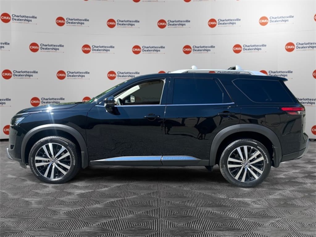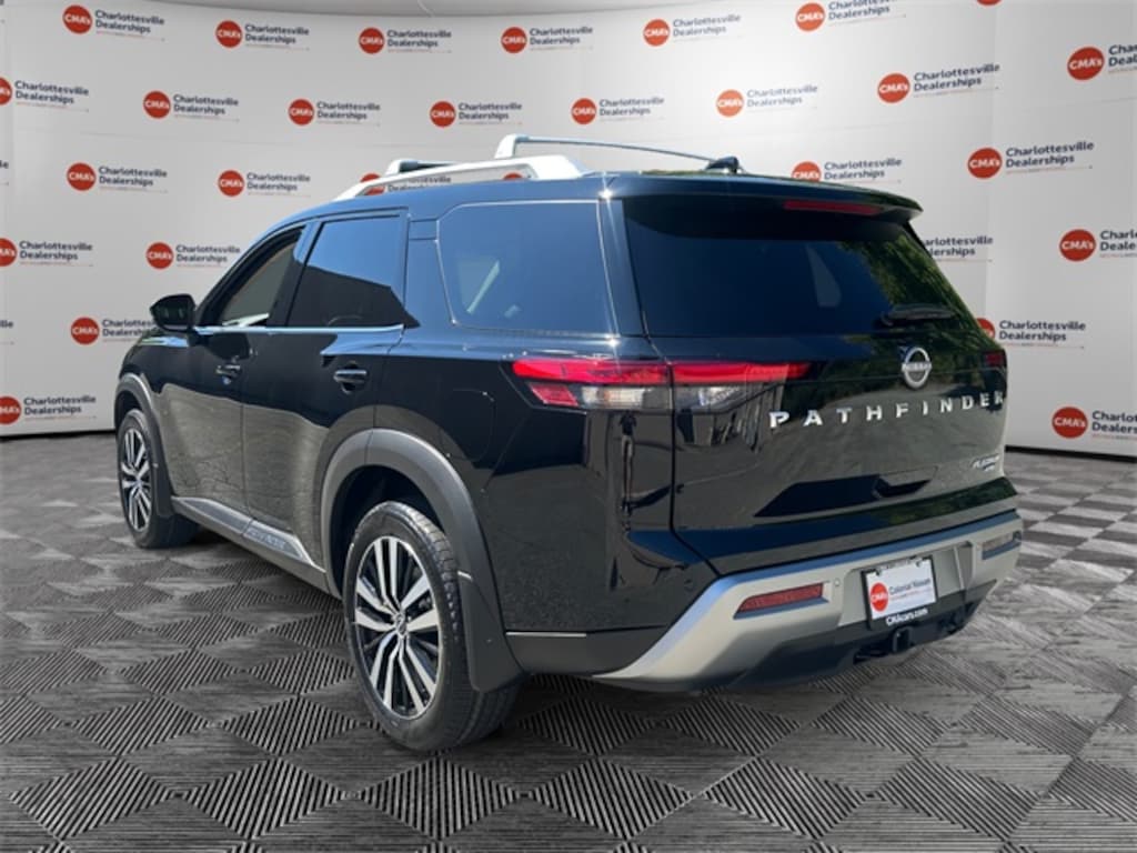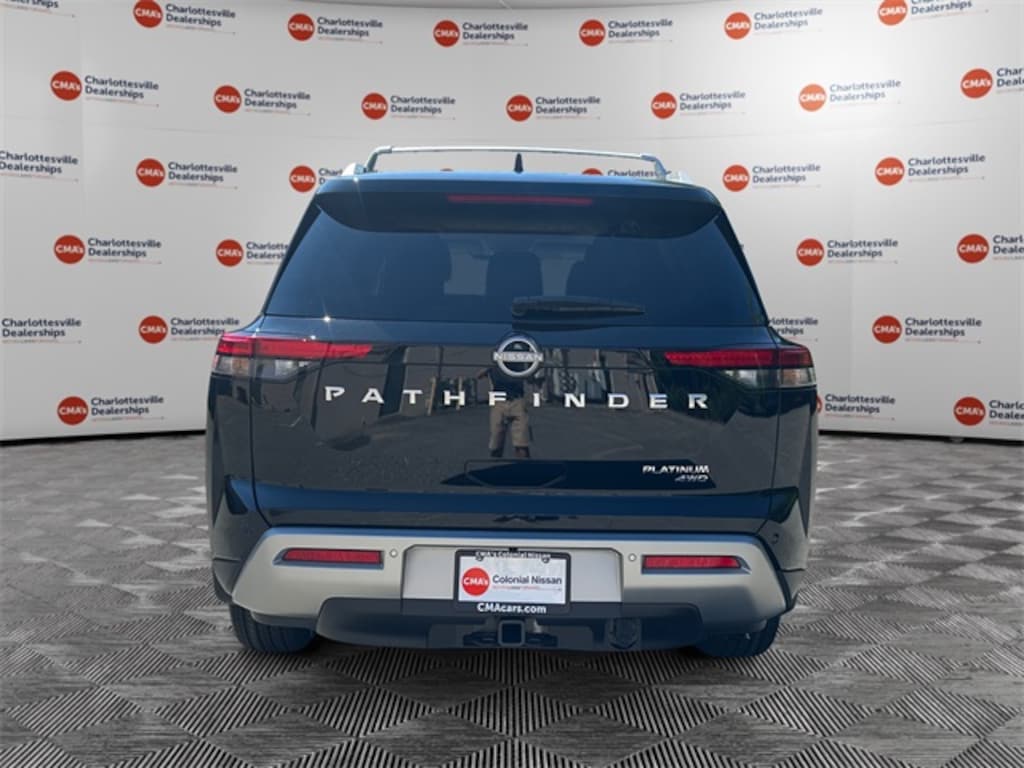 Super Black 2025 Nissan Pathfinder Platinum 4WD 9-Speed Automatic 3.5L V6 DOHC 4WD, 13 Speakers, 3rd row seats: bench, 4-Wheel Disc Brakes, ABS brakes, Air Conditioning, Alloy wheels, AM/FM radio: SiriusXM, Auto High-beam Headlights, Auto tilt-away steering wheel, Auto-dimming Rear-View mirror, Automatic temperature control, Bench Seat Carpeted Floor Mats (Set of 4), Black Splash Guards (Set of 4), Bodyside moldings, Bose Premium Audio System, Brake assist, Bumpers: body-color, Cargo Area Protector, Cargo Net, Cargo Package, Climate Controlled Front Bucket Seats, Cross Bars, Delay-off headlights, Driver door bin, Driver vanity mirror, Dual front impact airbags, Dual front side impact airbags, Electronic Stability Control, Emergency communication system, Exterior Parking Camera Rear, First Aid, Four wheel independent suspension, Front anti-roll bar, Front Bucket Seats, Front Center Armrest, Front dual zone A/C, Front reading lights, Fully automatic headlights, Garage door transmitter: HomeLink, Heads-Up Display, Heated door mirrors, Heated front seats, Heated rear seats, Heated steering wheel, Illuminated entry, Knee airbag, Leather steering wheel, Low tire pressure warning, Memory seat, Navigation system: NissanConnect with Navigation and Services, NissanConnect featuring Apple CarPlay and Android Auto, NissanConnect w/Navigation & Services, Occupant sensing airbag, Outside temperature display, Overhead airbag, Overhead console, Panic alarm, Passenger door bin, Passenger vanity mirror, Power door mirrors, Power driver seat, Power Liftgate, Power moonroof, Power passenger seat, Power steering, Power windows, Radio data system, Radio: AM/FM Audio System, Rain sensing wipers, Rear air conditioning, Rear anti-roll bar, Rear reading lights, Rear seat center armrest, Rear side impact airbag, Rear window defroster, Rear window wiper, Reclining 3rd row seat, Remote keyless entry, Security system, Semi-Aniline Leather-Appointed Seating Surfaces, Speed control, Speed-sensing steering, Speed-Sensitive Wipers, Split folding rear seat, Spoiler, Steering wheel memory, Steering wheel mounted audio controls, Tachometer, Telescoping steering wheel, Tilt steering wheel, Traction control, Trip computer, Turn signal indicator mirrors, Variably intermittent wipers, Ventilated front seats, Wheels: 20" x 8J Machined Alloy, 4WD.