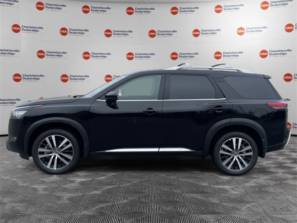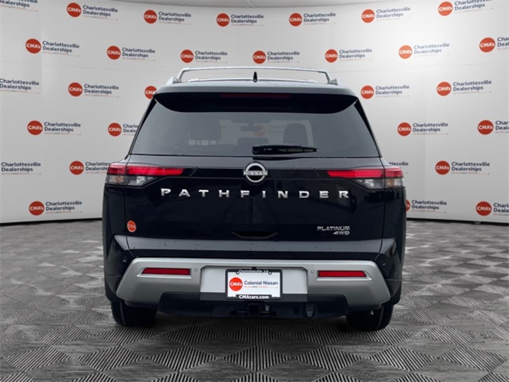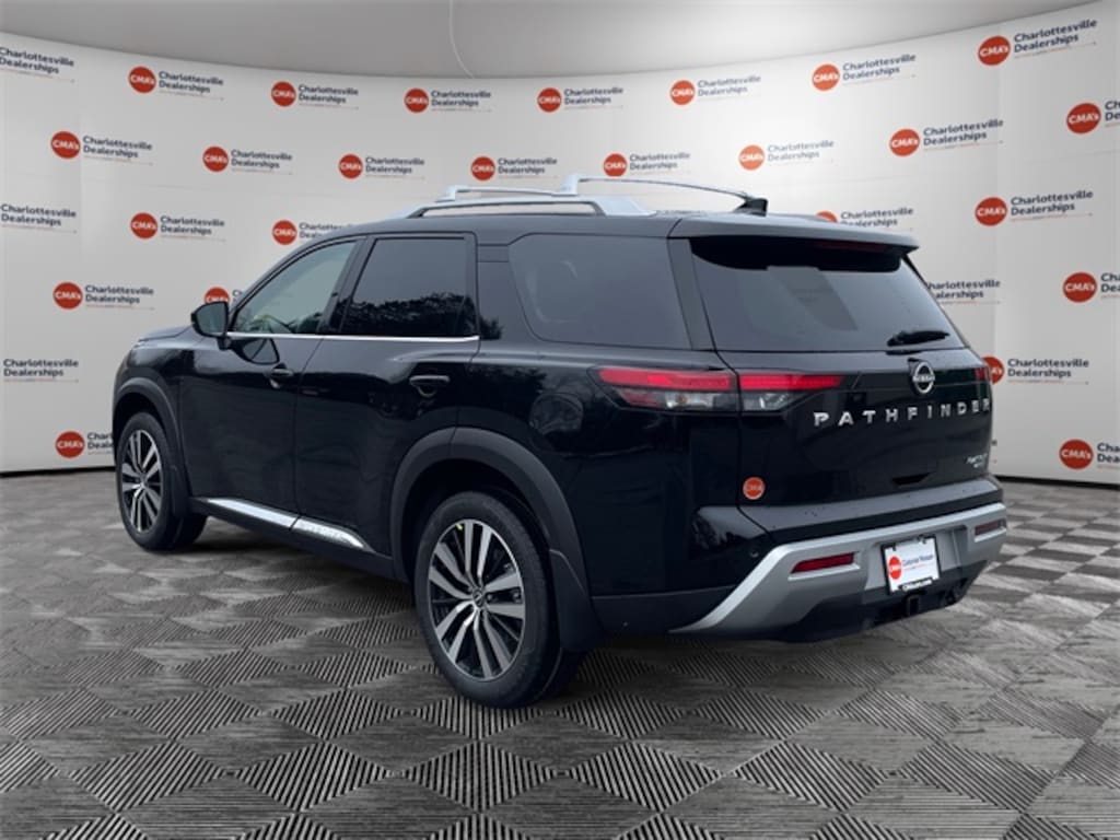 Super Black 2025 Nissan Pathfinder Platinum 4WD 9-Speed Automatic 3.5L V6 DOHC 4WD, 13 Speakers, 3rd row seats: bench, 4-Wheel Disc Brakes, ABS brakes, Air Conditioning, Alloy wheels, AM/FM radio: SiriusXM, Auto High-beam Headlights, Auto tilt-away steering wheel, Auto-dimming Rear-View mirror, Automatic temperature control, Bench Seat Carpeted Floor Mats (set of 4), Bodyside moldings, Bose Premium Audio System, Brake assist, Bumpers: body-color, Cargo Area Protector, Cargo Net, Cargo Package, Climate Controlled Front Bucket Seats, Cross Bars, Delay-off headlights, Driver door bin, Driver vanity mirror, Dual front impact airbags, Dual front side impact airbags, Electronic Stability Control, Emergency communication system, Exterior Parking Camera Rear, First Aid, Four wheel independent suspension, Front anti-roll bar, Front Bucket Seats, Front Center Armrest, Front dual zone A/C, Front reading lights, Fully automatic headlights, Garage door transmitter: HomeLink, Heads-Up Display, Heated door mirrors, Heated front seats, Heated rear seats, Heated steering wheel, Illuminated entry, Knee airbag, Leather steering wheel, LED Fog Lamps, Low tire pressure warning, Memory seat, Navigation system: NissanConnect with Navigation and Services, NissanConnect featuring Apple CarPlay and Android Auto, NissanConnect with Navigation and Services, Occupant sensing airbag, Outside temperature display, Overhead airbag, Overhead console, Panic alarm, Passenger door bin, Passenger vanity mirror, Power door mirrors, Power driver seat, Power Liftgate, Power moonroof, Power passenger seat, Power steering, Power windows, Radio data system, Radio: AM/FM Audio System, Rain sensing wipers, Rear air conditioning, Rear anti-roll bar, Rear reading lights, Rear seat center armrest, Rear side impact airbag, Rear window defroster, Rear window wiper, Reclining 3rd row seat, Remote keyless entry, Security system, Semi-Aniline Leather-Appointed Seating Surfaces, Speed control, Speed-sensing steering, Speed-Sensitive Wipers, Split folding rear seat, Spoiler, Steering wheel memory, Steering wheel mounted audio controls, Tachometer, Telescoping steering wheel, Tilt steering wheel, Traction control, Trip computer, Turn signal indicator mirrors, Variably intermittent wipers, Ventilated front seats, Wheels: 20" x 8J Machined Alloy, 4WD.