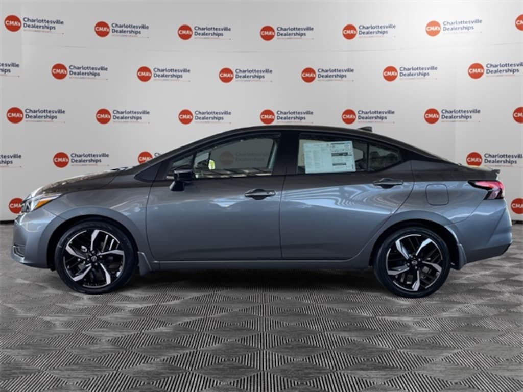 Gun Metallic 2025 Nissan Versa 1.6 SR FWD CVT 1.6L I4 DOHC 16V 17" Aluminum Alloy Wheels, 6 Speakers, ABS brakes, Air Conditioning, Alloy wheels, AM/FM radio: SiriusXM, Apple CarPlay/Android Auto, Auto High-beam Headlights, Automatic temperature control, Blind Spot Warning, Brake assist, Bumpers: body-color, Carpeted Floor Mats & Trunk Mat (5-Piece Set), Delay-off headlights, Driver door bin, Driver vanity mirror, Dual front impact airbags, Dual front side impact airbags, Electronic Stability Control, Emergency communication system, Front anti-roll bar, Front Bucket Seats, Front Center Armrest, Front reading lights, Front wheel independent suspension, Fully automatic headlights, Heated door mirrors, Heated Front Bucket Seats, Heated front seats, Illuminated entry, Knee airbag, Leather steering wheel, Low tire pressure warning, Occupant sensing airbag, Outside temperature display, Overhead airbag, Panic alarm, Passenger door bin, Passenger vanity mirror, Power door mirrors, Power steering, Power windows, Radio data system, Radio: AM/FM Audio System, Rear Parking Sensors, Rear side impact airbag, Rear window defroster, Remote keyless entry, Shopping Bag Hooks, Speed control, Splash Guards, Split folding rear seat, Spoiler, SR Fabric Seat Trim, Steering wheel mounted audio controls, Tachometer, Telescoping steering wheel, Tilt steering wheel, Traction control, Trip computer, Trunk Net, Trunk Package, Turn signal indicator mirrors, USB Charging Cable Set, Variably intermittent wipers.