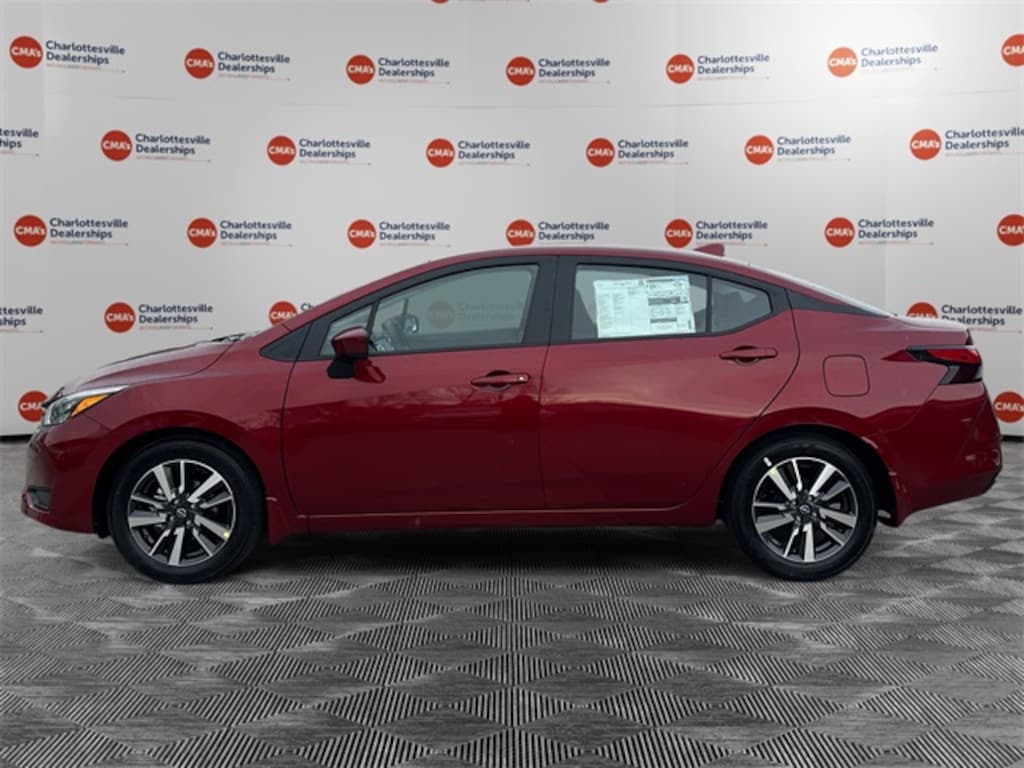 Scarlet Ember Tintcoat 2025 Nissan Versa 1.6 SV FWD CVT 1.6L I4 DOHC 16V 16" Aluminum Alloy Wheels, 4 Speakers, ABS brakes, Air Conditioning, Alloy wheels, Apple CarPlay/Android Auto, Auto High-beam Headlights, Blind Spot Warning, Brake assist, Bumpers: body-color, Carpeted Floor Mats & Trunk Mat (5-Piece Set), Delay-off headlights, Driver door bin, Driver vanity mirror, Dual front impact airbags, Dual front side impact airbags, Electronic Stability Control, Front anti-roll bar, Front Bucket Seats, Front Center Armrest, Front reading lights, Front wheel independent suspension, Fully automatic headlights, Heated door mirrors, Illuminated entry, Knee airbag, Low tire pressure warning, Occupant sensing airbag, Outside temperature display, Overhead airbag, Panic alarm, Passenger door bin, Passenger vanity mirror, Power door mirrors, Power steering, Power windows, Premium Paint, Radio data system, Radio: AM/FM Audio System, Rear Parking Sensors, Rear side impact airbag, Rear window defroster, Remote keyless entry, Shopping Bag Hooks, Speed control, Splash Guards, Split folding rear seat, Steering wheel mounted audio controls, Tachometer, Telescoping steering wheel, Tilt steering wheel, Traction control, Trip computer, Trunk Net, Trunk Package, Upgraded Cloth Seat Trim, USB Charging Cable Set, Variably intermittent wipers.
