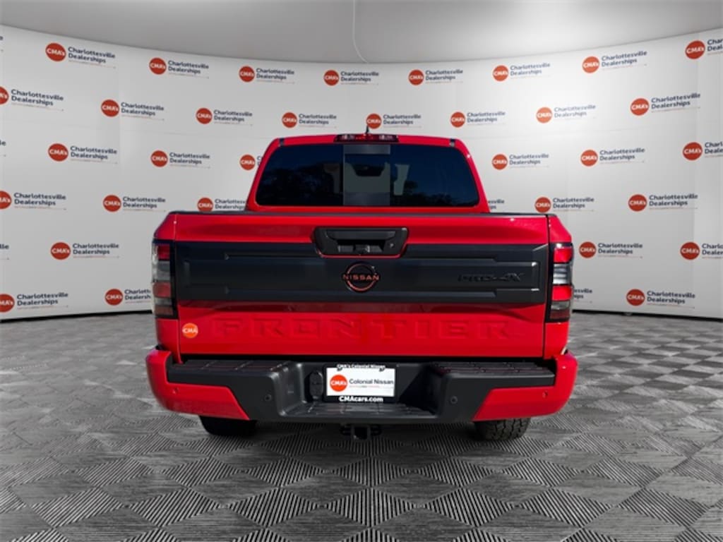 Red Alert 2026 Nissan Frontier PRO-4X 4WD 9-Speed Automatic with Overdrive 3.8L DI DOHC 24V V6 4WD, 17" Painted Alloy Wheels, 3.692 Axle Ratio, 4-Wheel Disc Brakes, 6 Speakers, ABS brakes, Air Conditioning, Alloy wheels, AM/FM radio: SiriusXM, Anti-whiplash front head restraints, Auto High-beam Headlights, Auto-Dimming Mirror, Auto-Tilt & Slide Sunroof w/Manual Shade, Automatic temperature control, Blind Spot Warning, Brake assist, Bumpers: body-color, Delay-off headlights, Driver door bin, Driver vanity mirror, Dual front impact airbags, Dual front side impact airbags, Electronic Stability Control, Electronic Tailgate Lock, Emergency communication system, Essentials Kit, Fender Premium Audio System w/10 Speakers, Front anti-roll bar, Front Bucket Seats, Front Center Armrest, Front dual zone A/C, Front fog lights, Front reading lights, Front wheel independent suspension, Fully automatic headlights, Heated Front Bucket Seats, Heated Steering Wheel, HomeLink UGDO, Illuminated entry, Intelligent Around View Monitor (I-AVM), Knee airbag, Leather Seat Trim, Leather steering wheel, Low tire pressure warning, Mud Flaps, Nissan Door-to-Door Navigation, Occupant sensing airbag, Off-Road Style Step Rails, Overhead airbag, Overhead console, Panic alarm, Partial Under-Seat Storage Delete, Passenger door bin, Passenger vanity mirror, Power door mirrors, Power driver seat, Power passenger seat, Power steering, Power windows, PRO Embroidered Premium Cloth Seat Trim, PRO Premium Package, PRO-4X Convenience Package, Radio data system, Radio: SXM/AM/FM/AUX/USB Audio System, Rear anti-roll bar, Rear seat center armrest, Rear side impact airbag, Rear step bumper, Remote keyless entry, Security system, Speed control, Speed-sensing steering, Split folding rear seat, Steering wheel mounted audio controls, Tachometer, Telescoping steering wheel, Tilt steering wheel, Traction control, Traffic Sign Recognition (TSR), Trip computer, Variably intermittent wipers, Voltmeter, Wireless Apple CarPlay/Wireless Android Auto, Wireless Charging for Personal Devices, 4WD.