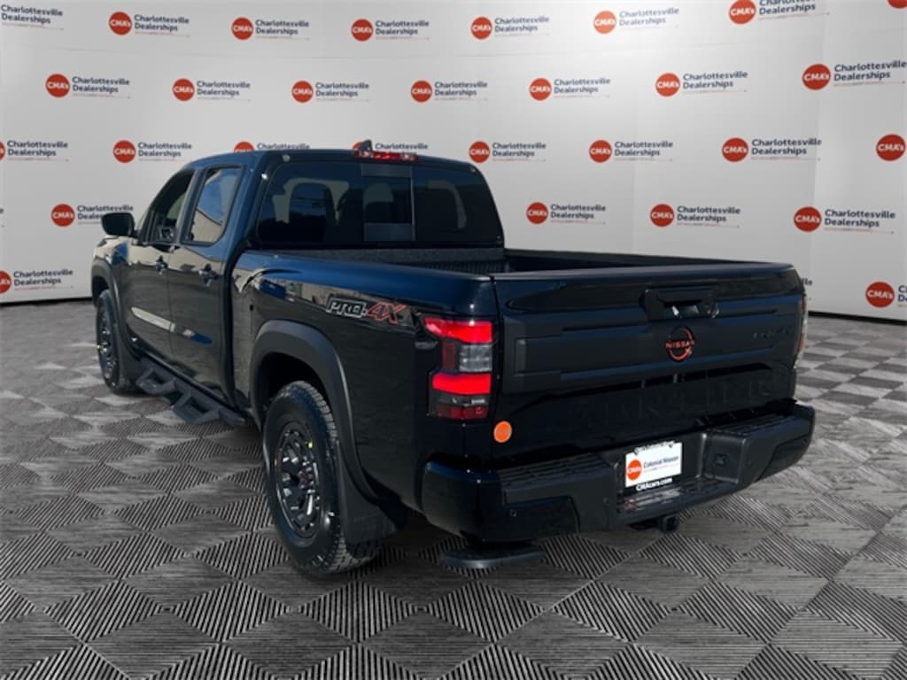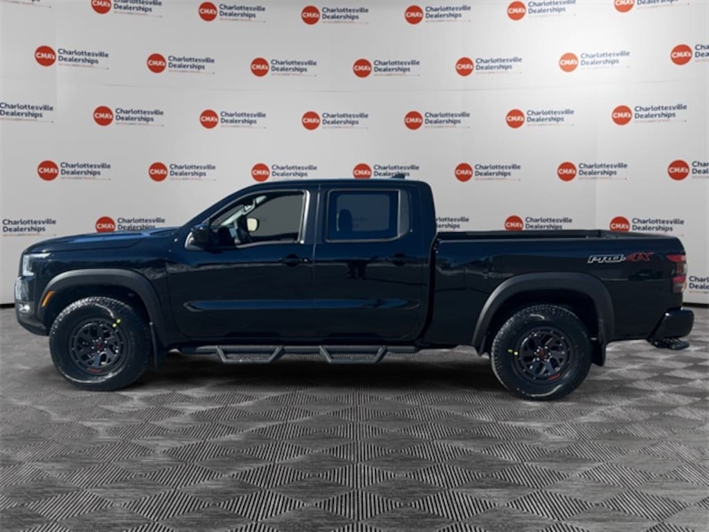 Super Black 2026 Nissan Frontier PRO-4X 4WD 9-Speed Automatic with Overdrive 3.8L DI DOHC 24V V6 4WD, 17" Painted Alloy Wheels, 3.692 Axle Ratio, 4-Wheel Disc Brakes, 6 Speakers, ABS brakes, Air Conditioning, Alloy wheels, AM/FM radio: SiriusXM, Anti-whiplash front head restraints, Auto High-beam Headlights, Automatic temperature control, Blind Spot Warning, Brake assist, Bumpers: body-color, Delay-off headlights, Driver door bin, Driver vanity mirror, Drop-In Bed Liner & Bumper Step, Dual front impact airbags, Dual front side impact airbags, Electronic Stability Control, Emergency communication system, Essentials Kit, Front anti-roll bar, Front Bucket Seats, Front Center Armrest, Front dual zone A/C, Front fog lights, Front reading lights, Front wheel independent suspension, Fully automatic headlights, Heated Front Bucket Seats, Heated front seats, Heated steering wheel, Illuminated entry, Knee airbag, Leather steering wheel, Low tire pressure warning, Mud Flaps, Occupant sensing airbag, Off-Road Style Step Rails, Overhead airbag, Overhead console, Panic alarm, Passenger door bin, Passenger vanity mirror, Power door mirrors, Power driver seat, Power passenger seat, Power steering, Power windows, PRO Embroidered Premium Cloth Seat Trim, Radio data system, Radio: SXM/AM/FM/AUX/USB Audio System, Rear anti-roll bar, Rear seat center armrest, Rear side impact airbag, Rear step bumper, Remote keyless entry, Security system, Speed control, Speed-sensing steering, Split folding rear seat, Steering wheel mounted audio controls, Tachometer, Telescoping steering wheel, Tilt steering wheel, Tow Package, Traction control, Trip computer, Variably intermittent wipers, Voltmeter, Wireless Apple CarPlay/Wireless Android Auto, 4WD.