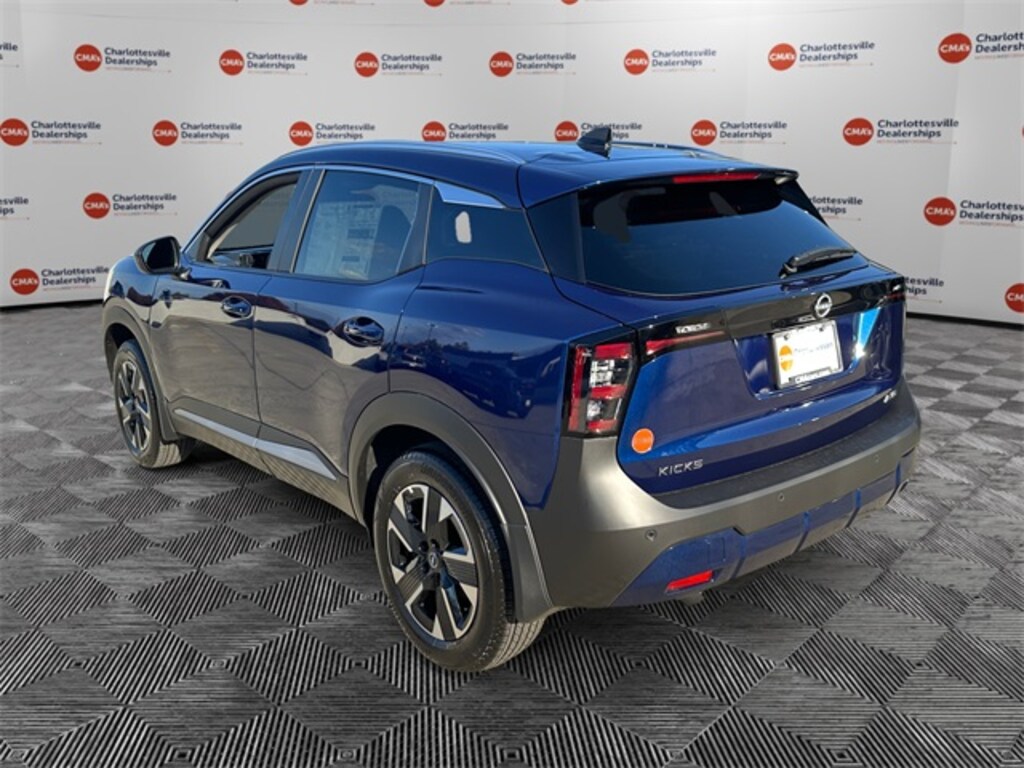 Deep Blue Pearl 2026 Nissan Kicks SV AWD CVT with Xtronic 2.0L DOHC 17" Alloy Wheels, 4 Speakers, 4-Wheel Disc Brakes, ABS brakes, Air Conditioning, Alloy wheels, AM/FM radio, Auto High-beam Headlights, Automatic temperature control, Blind Spot Warning, Brake assist, Bumpers: body-color, Carpeted Floor Mats, Cloth Seat Trim, Cold Weather Package, Driver door bin, Driver vanity mirror, Dual front impact airbags, Dual front side impact airbags, Electronic Stability Control, Emergency communication system, Exterior Parking Camera Rear, Four wheel independent suspension, Front anti-roll bar, Front Bucket Seats, Front Center Armrest, Front reading lights, Fully automatic headlights, Heated Front Seats, Heated Mirrors, Illuminated entry, Knee airbag, Low tire pressure warning, NissanConnect featuring Apple CarPlay and Android Auto, Occupant sensing airbag, Outside temperature display, Overhead airbag, Panic alarm, Passenger door bin, Passenger vanity mirror, Power door mirrors, Power steering, Power windows, Radio data system, Radio: AM/FM/SiriusXM Audio System, Rear anti-roll bar, Rear Floor Heater Ducts, Rear reading lights, Rear side impact airbag, Rear window defroster, Rear window wiper, Remote keyless entry, Security system, Speed control, Speed-sensing steering, Splash Guards, Split folding rear seat, Spoiler, Sport steering wheel, Steering wheel mounted audio controls, Tachometer, Telescoping steering wheel, Tilt steering wheel, Traction control, Trip computer, Variably intermittent wipers.