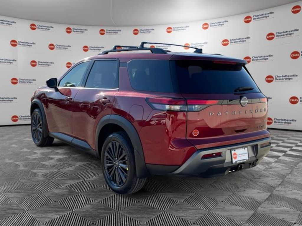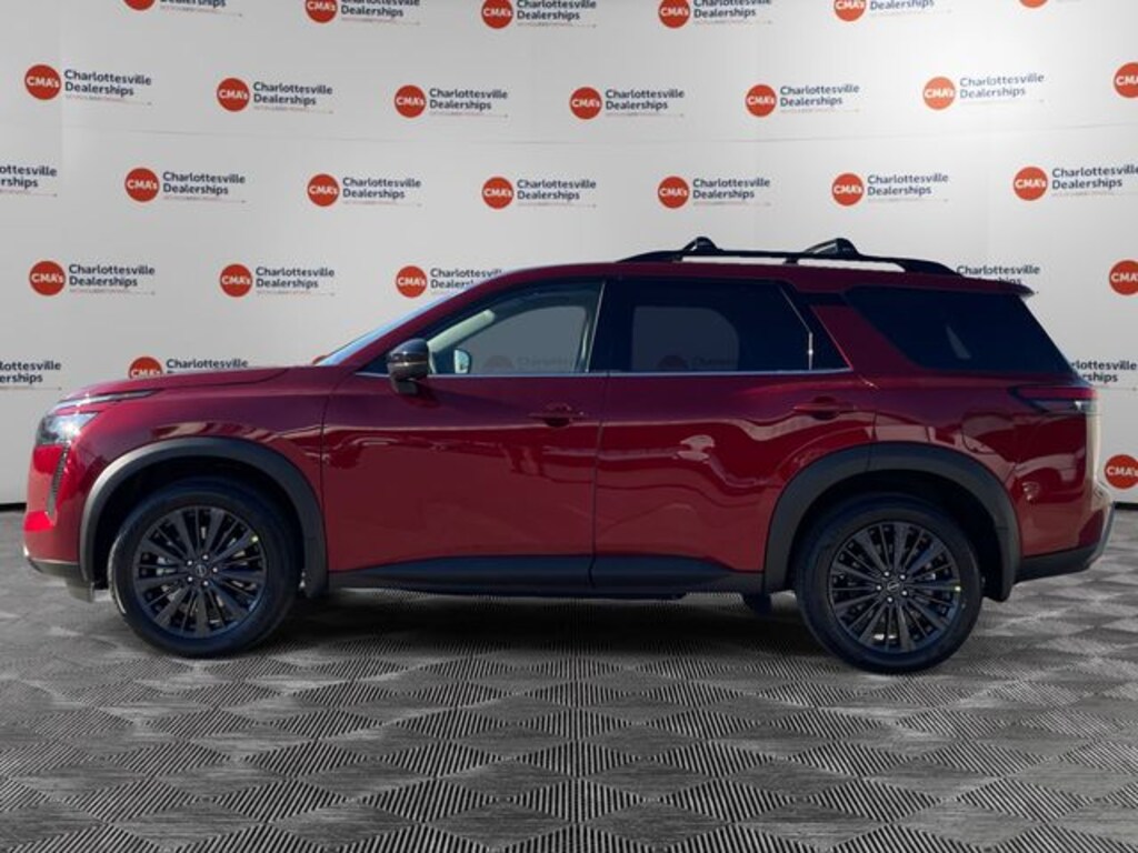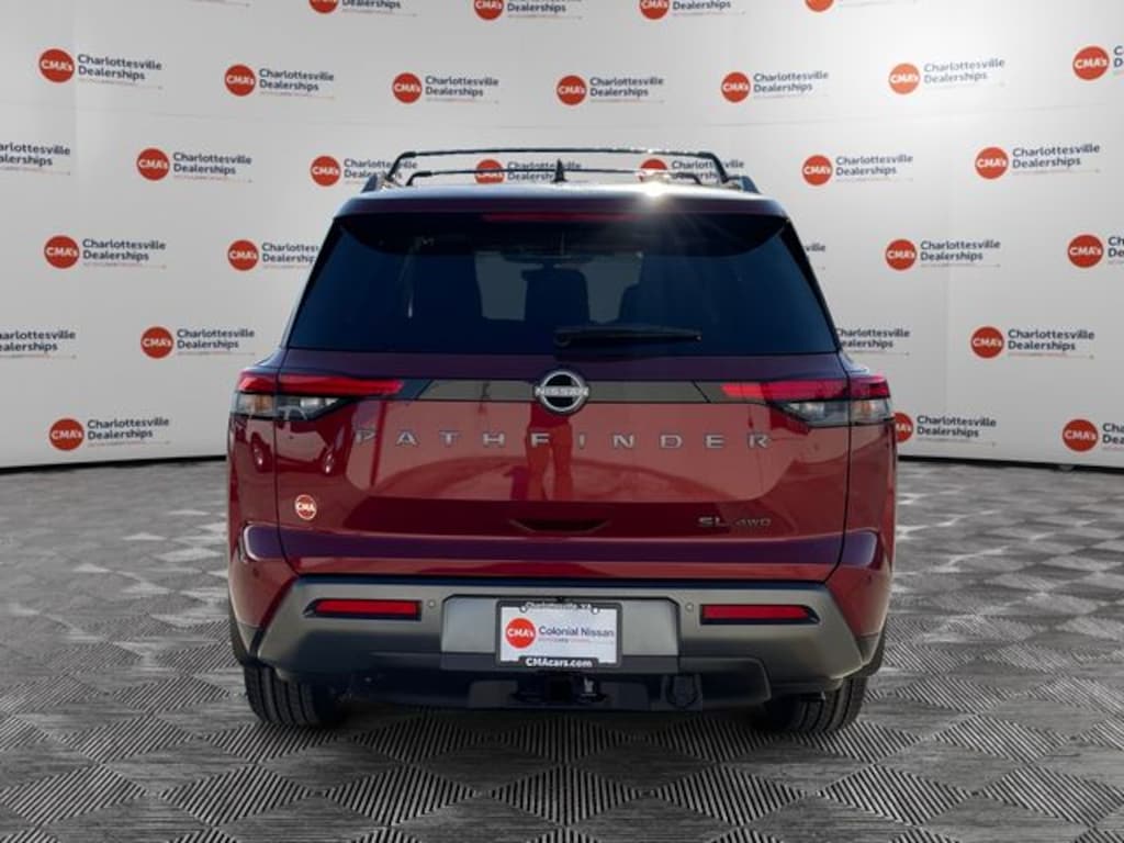 Scarlet Ember Tintcoat 2026 Nissan Pathfinder SL 4WD 9-Speed Automatic 3.5L V6 DOHC 4WD, 18 Machined Alloy Wheels, 2nd Row Manual Sunshades, 2nd-Row Captain Chairs, 3rd row seats: bench, 4-Piece Black Splash Guards, 4-Wheel Disc Brakes, 6 Speakers, ABS brakes, Air Conditioning, Alloy wheels, AM/FM radio: SiriusXM w/360L, Auto High-beam Headlights, Auto-dimming Rear-View mirror, Automatic temperature control, Bose Premium Audio System, Brake assist, Bumpers: body-color, Captain's Chairs Carpeted Floor Mats, Cargo Area Protector, Cargo Net, Cargo Package, Cross Bars, Delay-off headlights, Driver door bin, Driver vanity mirror, Dual front impact airbags, Dual front side impact airbags, Electronic Stability Control, Emergency communication system: NissanConnect Services, First Aid, Four wheel independent suspension, Front anti-roll bar, Front Bucket Seats, Front Center Armrest, Front dual zone A/C, Front reading lights, Fully automatic headlights, Garage door transmitter: HomeLink, Heated door mirrors, Heated Front Bucket Seats, Heated front seats, Heated Rear Seats, Heated steering wheel, Illuminated entry, Knee airbag, Low tire pressure warning, Nissan USB Charging Cable Set, NissanConnect featuring Apple CarPlay and Android Auto, Occupant sensing airbag, Outside temperature display, Overhead airbag, Overhead console, Panic alarm, Panoramic Moonroof, Passenger door bin, Passenger vanity mirror, Power door mirrors, Power driver seat, Power Liftgate, Power steering, Power windows, Premium Paint, Radio data system, Radio: AM/FM Audio System with NissanConnect, Rear air conditioning, Rear anti-roll bar, Rear reading lights, Rear seat center armrest, Rear side impact airbag, Rear window defroster, Rear window wiper, Reclining 3rd row seat, Remote keyless entry, Removable Center Console, Security system, SL Premium Package, Speed control, Speed-sensing steering, Split folding rear seat, Spoiler, Steering wheel mounted audio controls, Tachometer, TailorFit Appointed Seating Surfaces, Telescoping steering wheel, Tilt steering wheel, Tow Hitch Receiver and Harness, Traction control, Trip computer, Turn signal indicator mirrors, Variably intermittent wipers, Wheels: 20 Machined Alloy with Dark Metallic Gray Finish, 4WD.21/27 City/Highway MPG