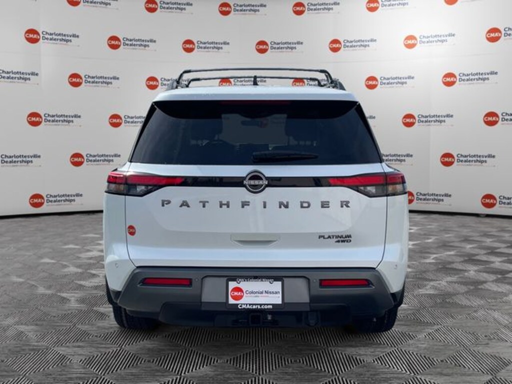 Everest White Pearl Tricoat 2026 Nissan Pathfinder Platinum 4WD 9-Speed Automatic 3.5L V6 DOHC 4WD, 13 Speakers, 2nd-Row Captain Chairs, 2nd-Row Removable Centre Console, 3rd row seats: bench, 4-Piece Black Splash Guards, 4-Wheel Disc Brakes, ABS brakes, Air Conditioning, Alloy wheels, AM/FM radio: SiriusXM w/360L, Auto High-beam Headlights, Auto tilt-away steering wheel, Auto-dimming Rear-View mirror, Automatic temperature control, Bodyside moldings, Bose Premium Audio System, Brake assist, Bumpers: body-color, Captain's Chairs Carpeted Floor Mats, Cargo Area Protector, Cargo Net, Cargo Package, Climate Controlled Front Bucket Seats, Cross Bars, Delay-off headlights, Driver door bin, Driver vanity mirror, Dual front impact airbags, Dual front side impact airbags, Electronic Stability Control, Emergency communication system: NissanConnect Services, First Aid, Four wheel independent suspension, Front anti-roll bar, Front Bucket Seats, Front Center Armrest, Front dual zone A/C, Front reading lights, Fully automatic headlights, Garage door transmitter: HomeLink, Heads-Up Display, Heated door mirrors, Heated front seats, Heated rear seats, Heated steering wheel, Illuminated entry, Knee airbag, Low tire pressure warning, Memory seat, NissanConnect featuring Apple CarPlay and Android Auto, Occupant sensing airbag, Outside temperature display, Overhead airbag, Overhead console, Panic alarm, Passenger door bin, Passenger vanity mirror, Platinum Captain Chairs Package, Power door mirrors, Power driver seat, Power Liftgate, Power moonroof, Power passenger seat, Power steering, Power windows, Premium Paint, Radio data system, Radio: AM/FM Audio System with NissanConnect, Rain sensing wipers, Rear air conditioning, Rear anti-roll bar, Rear reading lights, Rear seat center armrest, Rear side impact airbag, Rear window defroster, Rear window wiper, Reclining 3rd row seat, Remote keyless entry, Security system, Semi-Aniline Leather-Appointed Seating Surfaces, Speed control, Speed-sensing steering, Speed-Sensitive Wipers, Split folding rear seat, Spoiler, Steering wheel memory, Steering wheel mounted audio controls, Tachometer, Telescoping steering wheel, Tilt steering wheel, Traction control, Trip computer, Turn signal indicator mirrors, Variably intermittent wipers, Ventilated front seats, Wheels: 20 Machined Alloy, 4WD.