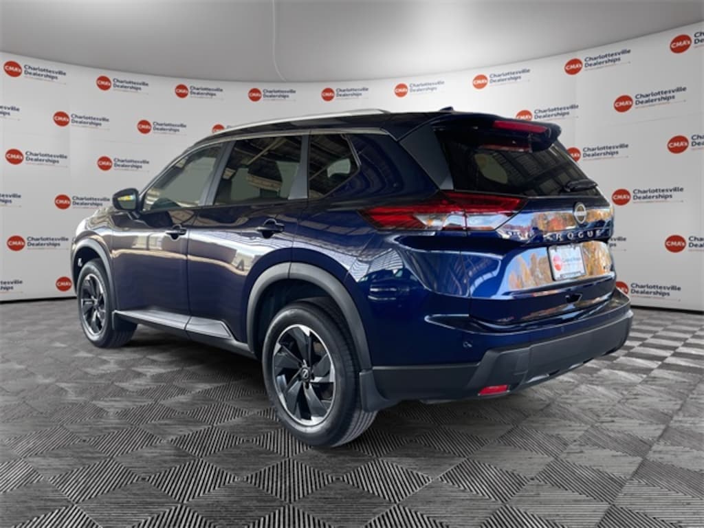 Deep Ocean Blue Pearl 2026 Nissan Rogue SV AWD CVT with Xtronic 1.5L DOHC AWD, 4-Wheel Disc Brakes, 6 Speakers, ABS brakes, Air Conditioning, Alloy wheels, AM/FM radio: Sirius, Apple CarPlay/Android Auto, Auto High-beam Headlights, Automatic temperature control, Black Splash Guards (Set of 4) (B92), Brake assist, Bumpers: body-color, Cloth Seat Trim w/Patterned Inserts, Cold Weather Package, Delay-off headlights, Driver door bin, Driver vanity mirror, Dual front impact airbags, Dual front side impact airbags, Electronic Stability Control, Emergency communication system: NissanConnect Services, First Aid Kit, Floor Mats w/1-Piece Cargo Area Protector, Four wheel independent suspension, Front anti-roll bar, Front Bucket Seats, Front Center Armrest, Front dual zone A/C, Front reading lights, Fully automatic headlights, Heated door mirrors, Heated Front Seats, Heated Steering Wheel, Illuminated entry, Knee airbag, Leatherette Door Trim Inserts w/Stitch, Low tire pressure warning, Occupant sensing airbag, Outside temperature display, Overhead airbag, Overhead console, Panic alarm, Panoramic Moonroof, Passenger door bin, Passenger vanity mirror, Power door mirrors, Power driver seat, Power Liftgate, Power steering, Power windows, Prima-Tex Leatherette Seat Trim, Radio data system, Radio: AM/FM NissanConnect, Rear anti-roll bar, Rear Door Sunshades, Rear Personal Lights, Rear seat center armrest, Rear side impact airbag, Rear window defroster, Rear window wiper, Remote keyless entry, Silver Painted Roof Rails, Speed control, Speed-sensing steering, Speed-Sensitive Wipers, Split folding rear seat, Spoiler, Steering wheel mounted audio controls, SV Premium Package, Tachometer, Telescoping steering wheel, Tilt steering wheel, Traction control, Trip computer, Variably intermittent wipers, Wheels: 18" Dark Painted Machine Finished Alloy, AWD.