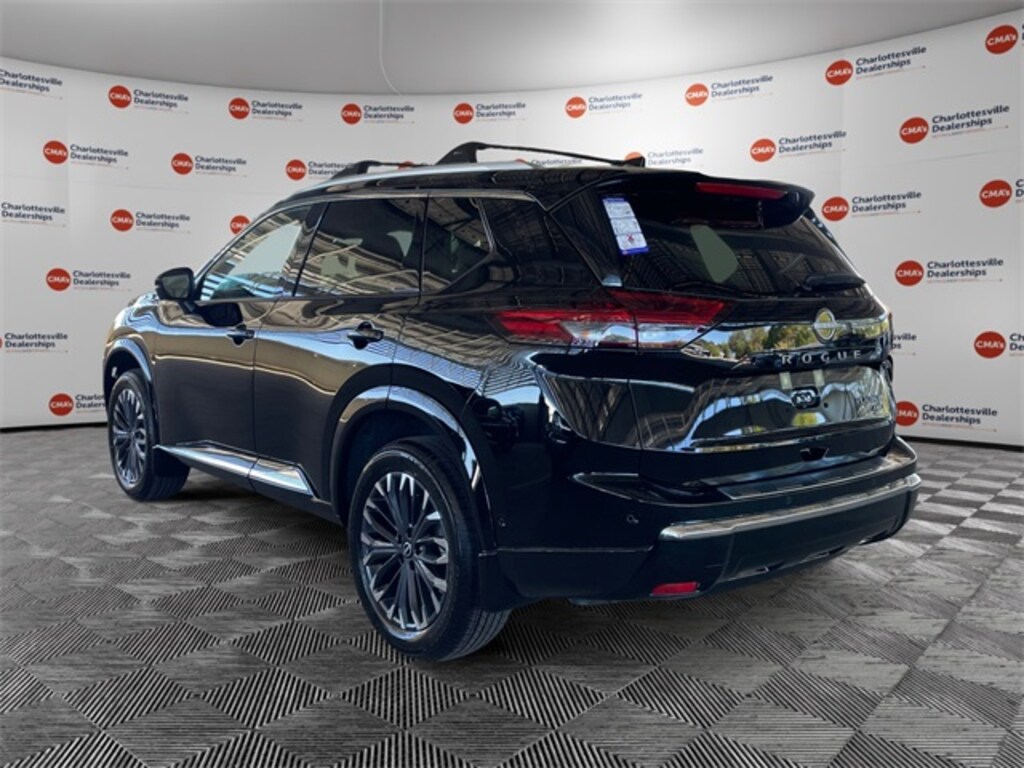 Super Black 2026 Nissan Rogue Platinum AWD CVT with Xtronic 1.5L DOHC AWD, 10 Speakers, 4-Wheel Disc Brakes, ABS brakes, Air Conditioning, Alloy wheels, AM/FM radio: SiriusXM w/360L, Auto High-beam Headlights, Auto-dimming Rear-View mirror, Automatic temperature control, Black Splash Guards (Set of 4), Bose Premium Audio System, Brake assist, Bumpers: body-color, Chrome Rear Bumper Protector, Delay-off headlights, Driver door bin, Driver vanity mirror, Dual front impact airbags, Dual front side impact airbags, Electronic Stability Control, Emergency communication system: NissanConnect Services, First Aid Kit, Floor Mats w/2-Piece Cargo Area Protector, Four wheel independent suspension, Front anti-roll bar, Front Bucket Seats, Front Center Armrest, Front dual zone A/C, Front reading lights, Fully automatic headlights, Garage door transmitter: myQ Connected Garage, Head-Up Display, Heads-Up Display, Heated door mirrors, Heated Front Bucket Seats, Heated front seats, Heated Rear Seats, Heated steering wheel, Illuminated entry, Knee airbag, Low tire pressure warning, Memory seat, Motion-Activated Power Liftgate, Navigation system: Google Maps, Occupant sensing airbag, Outside temperature display, Overhead airbag, Overhead console, Panic alarm, Passenger door bin, Passenger vanity mirror, Platinum Premium Package, Power door mirrors, Power driver seat, Power Liftgate, Power moonroof, Power passenger seat, Power steering, Power windows, Quilted Semi-Aniline Leather-Appointed Seat Trim, Radio data system, Radio: AM/FM NissanConnect w/Navigation, Rear anti-roll bar, Rear reading lights, Rear seat center armrest, Rear side impact airbag, Rear window defroster, Rear window wiper, Remote keyless entry, Roof Rail Cross Bars, Security system, Speed control, Speed-sensing steering, Speed-Sensitive Wipers, Split folding rear seat, Spoiler, Steering wheel mounted audio controls, Tachometer, Telescoping steering wheel, Tilt steering wheel, Traction control, Tri-Zone Automatic Temperature Control, Trip computer, Turn signal indicator mirrors, Variably intermittent wipers, Wheels: 19" Unique Dark Painted Aluminum Alloy, Wireless Apple CarPlay/Wireless Android Auto, AWD.