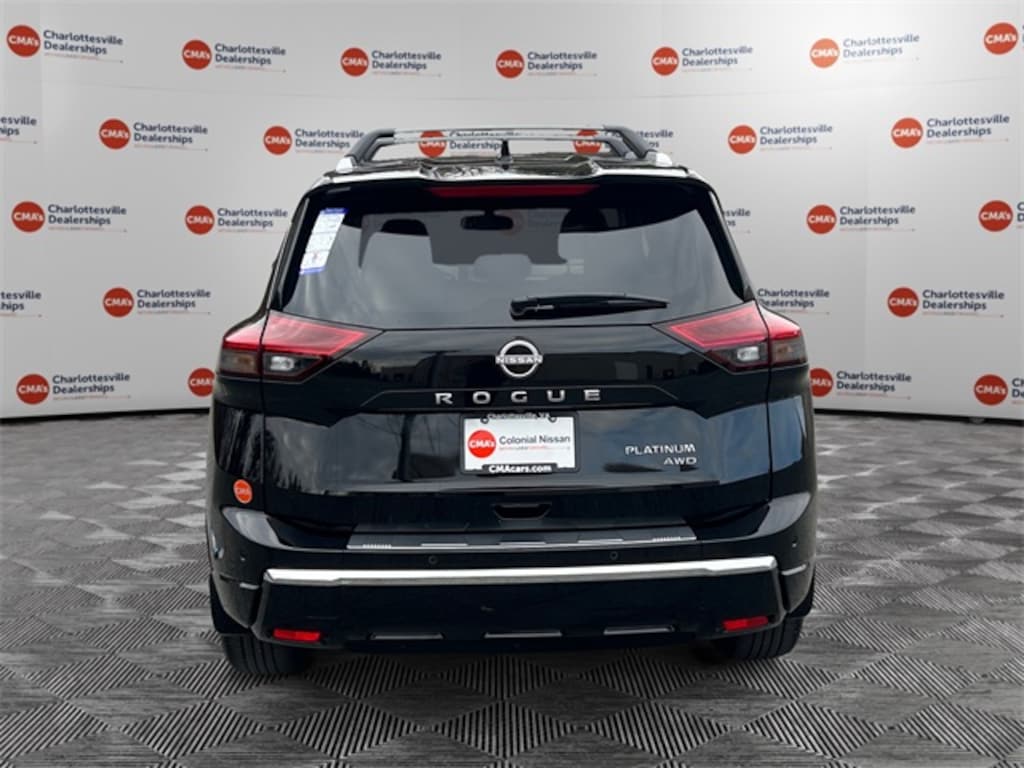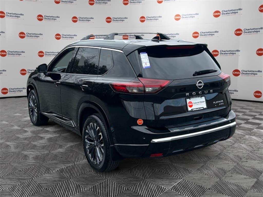 Super Black 2026 Nissan Rogue Platinum AWD CVT with Xtronic 1.5L DOHC AWD, 10 Speakers, 4-Wheel Disc Brakes, ABS brakes, Air Conditioning, Alloy wheels, AM/FM radio: SiriusXM w/360L, Auto High-beam Headlights, Auto-dimming Rear-View mirror, Automatic temperature control, Black Splash Guards (set of 4), Bose Premium Audio System, Brake assist, Bumpers: body-color, Chrome Rear Bumper Protector, Delay-off headlights, Driver door bin, Driver vanity mirror, Dual front impact airbags, Dual front side impact airbags, Electronic Stability Control, Emergency communication system: NissanConnect Services, First Aid Kit, Floor Mats with 2-Piece Cargo Area Protector, Four wheel independent suspension, Front anti-roll bar, Front Bucket Seats, Front Center Armrest, Front dual zone A/C, Front reading lights, Fully automatic headlights, Garage door transmitter: myQ Connected Garage, Head-Up Display, Heads-Up Display, Heated door mirrors, Heated Front Bucket Seats, Heated front seats, Heated Rear Seats, Heated steering wheel, Illuminated entry, Knee airbag, Low tire pressure warning, Memory seat, Motion-Activated Power Liftgate, Navigation system: Google Maps, Occupant sensing airbag, Outside temperature display, Overhead airbag, Overhead console, Panic alarm, Passenger door bin, Passenger vanity mirror, Platinum Premium Package, Power door mirrors, Power driver seat, Power Liftgate, Power moonroof, Power passenger seat, Power steering, Power windows, Quilted Semi-Aniline Leather-Appointed Seat Trim, Radio data system, Radio: AM/FM NissanConnect with Navigation, Rear anti-roll bar, Rear reading lights, Rear seat center armrest, Rear side impact airbag, Rear window defroster, Rear window wiper, Remote keyless entry, Retractable Cargo Cover, Roof Rail Cross Bars, Security system, Speed control, Speed-sensing steering, Speed-Sensitive Wipers, Split folding rear seat, Spoiler, Steering wheel mounted audio controls, Tachometer, Telescoping steering wheel, Tilt steering wheel, Traction control, Tri-Zone Automatic Temperature Control, Trip computer, Turn signal indicator mirrors, Variably intermittent wipers, Wheels: 19" Unique Dark Painted Aluminum Alloy, Wireless Apple CarPlay/Wireless Android Auto, AWD.
