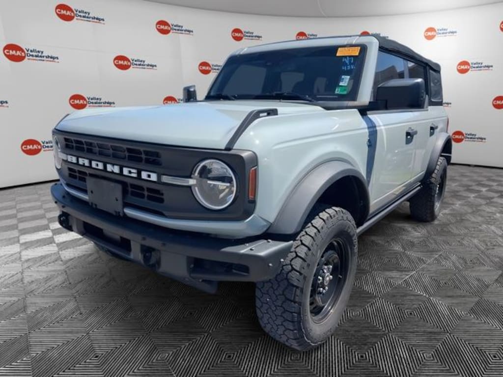 *BACKUP CAMERA*, *BLUETOOTH*, *ONE OWNER*, *INCLUDES WARRANTY*, *RECENT TRADE IN*, *LOCAL TRADE*, *CLEAN AUTOCHECK*, *KEYLESS START*, *REMOTE START*, Bronco Black Diamond, 4D Sport Utility, 2.7L EcoBoost V6, 10-Speed Automatic, 4WD, Cactus Gray, Dark Gray W/Black Onyx Vinyl, 4-Wheel Disc Brakes, 6 Speakers, ABS brakes, Air Conditioning, AM/FM radio: SiriusXM with 360L, AM/FM Stereo, Auto High-beam Headlights, Brake assist, Compass, Delay-off headlights, Driver door bin, Driver vanity mirror, Dual front impact airbags, Dual front side impact airbags, Electronic Stability Control, Emergency communication system: 911 Assist, Exterior Parking Camera Rear, Ford Performance Heavy-Duty Modular Front Bumper, Front anti-roll bar, Front Bucket Seats, Front Center Armrest, Front License Plate Bracket, Front reading lights, Front wheel independent suspension, Fully automatic headlights, Heated door mirrors, Illuminated entry, Integrated roll-over protection, Low tire pressure warning, Occupant sensing airbag, Outside temperature display, Overhead airbag, Overhead console, Panic alarm, Passenger door bin, Passenger vanity mirror, Power door mirrors, Power steering, Power windows, Radio data system, Remote keyless entry, Security system, SiriusXM Radio w/360L, Speed control, Split folding rear seat, Steering wheel mounted audio controls, SYNC 4, Tachometer, Telescoping steering wheel, Tilt steering wheel, Traction control, Trip computer, Variably intermittent wipers, Bronco Black Diamond, 4D Sport Utility, 2.7L EcoBoost V6, 10-Speed Automatic, 4WD, Cactus Gray, Dark Gray W/Black Onyx Vinyl.