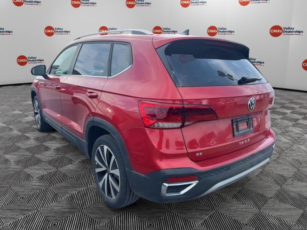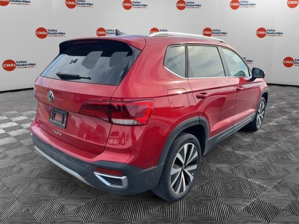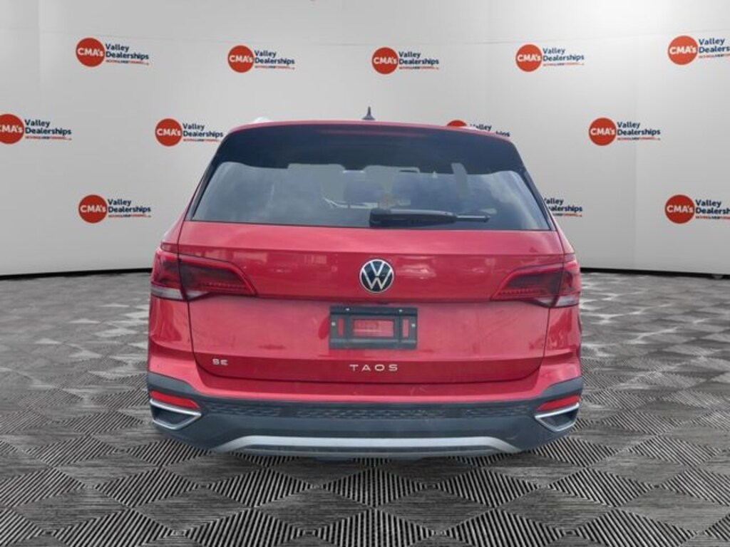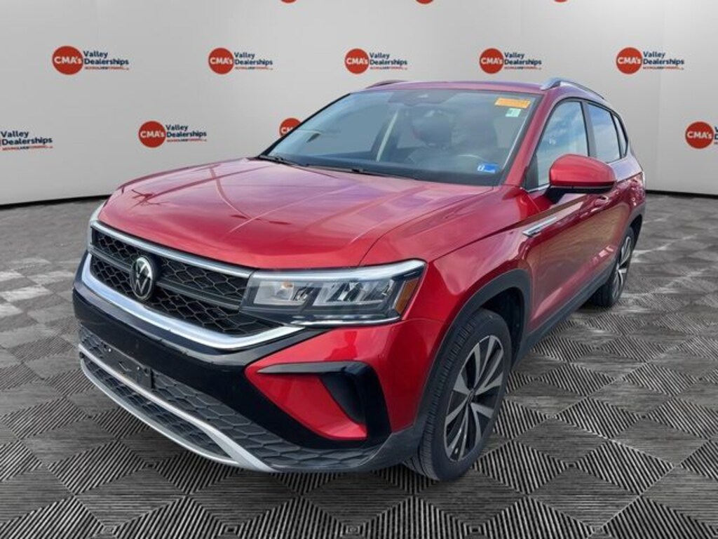 *VOLKSWAGEN CERTIFIED*, *BACKUP CAMERA*, *BLUETOOTH*, *ONE OWNER*, *INCLUDES WARRANTY*, *RECENT TRADE IN*, *LOCAL TRADE*, *CLEAN AUTOCHECK*, *KEYLESS START*, *REMOTE START*, Taos 1.5T SE, Volkswagen Certified Pre-Owned Certified, 4D Sport Utility, 1.5L I4 Turbocharged DOHC 16V LEV3-SULEV30 158hp, 8-Speed Automatic with Tiptronic, FWD, Red, Cloth, 3.23 Axle Ratio, 4-Wheel Disc Brakes, 6 Speakers, ABS brakes, Active Blind Spot Monitor, Air Conditioning, Alloy wheels, AM/FM radio: SiriusXM with 360L, Auto High-beam Headlights, Brake assist, Bumpers: body-color, CloudTex & Cloth Seating Surfaces, Compass, Delay-off headlights, Driver door bin, Driver vanity mirror, Dual front impact airbags, Dual front side impact airbags, Electronic Stability Control, Emergency communication system: VW Car-Net Safe & Secure 5-year, Exterior Parking Camera Rear, Front anti-roll bar, Front Bucket Seats, Front Center Armrest, Front reading lights, Front Strut Rear Torsion Beam Suspension, Front wheel independent suspension, Fully automatic headlights, Heated door mirrors, Heated Front Comfort Seats, Heated front seats, Heated steering wheel, Illuminated entry, Leather Shift Knob, Low tire pressure warning, Occupant sensing airbag, Outside temperature display, Overhead airbag, Overhead console, Panic alarm, Passenger door bin, Passenger vanity mirror, Power door mirrors, Power driver seat, Power steering, Power windows, Radio data system, Radio: MIB3 Composition Media AM/FM/HD, Rain sensing wipers, Rear anti-roll bar, Rear seat center armrest, Rear window defroster, Rear window wiper, Remote keyless entry, Roof rack: rails only, Security system, Speed control, Speed-sensing steering, Split folding rear seat, Spoiler, Steering wheel mounted audio controls, Tachometer, Telescoping steering wheel, Tilt steering wheel, Traction control, Trip computer, Variably intermittent wipers, Wheels: 18" 2-Tone Machined Alloy, Taos 1.5T SE, 4D Sport Utility, 1.5L I4 Turbocharged DOHC 16V LEV3-SULEV30 158hp, 8-Speed Automatic with Tiptronic, FWD, Red, Cloth.
